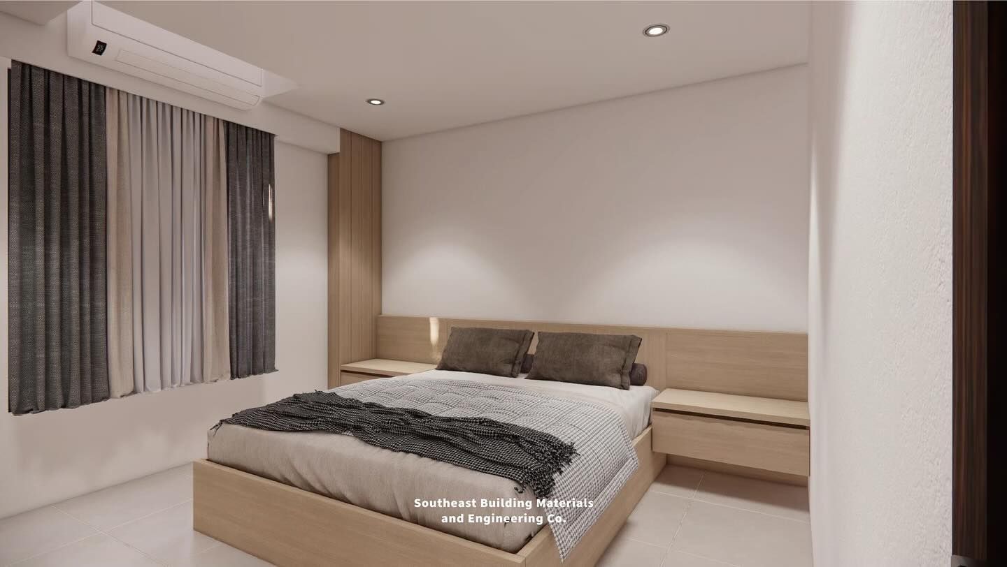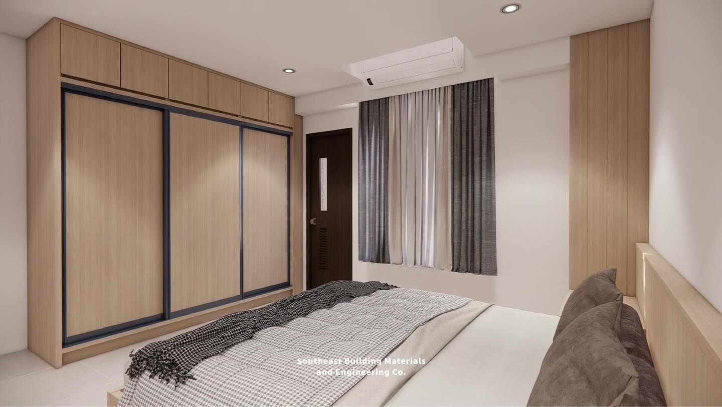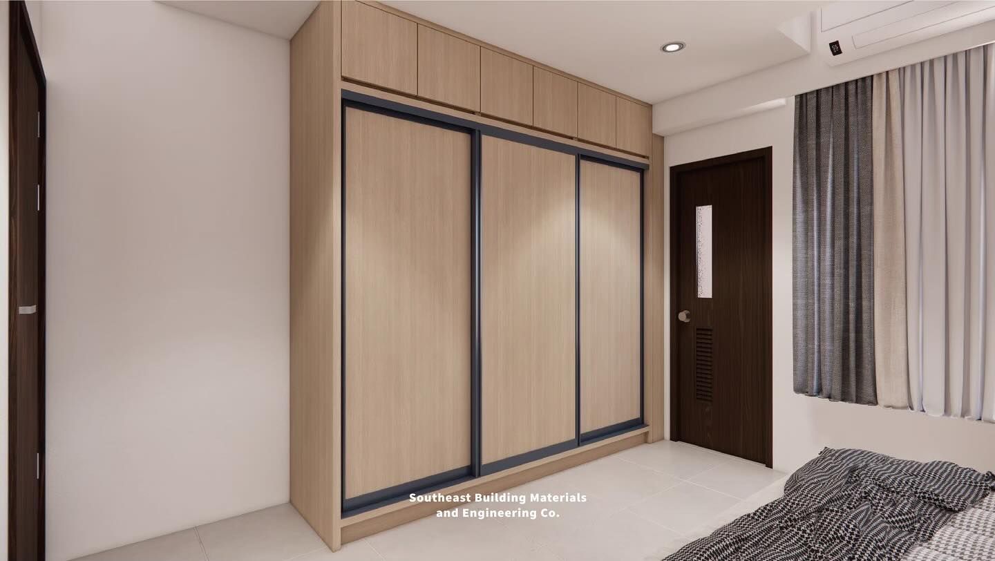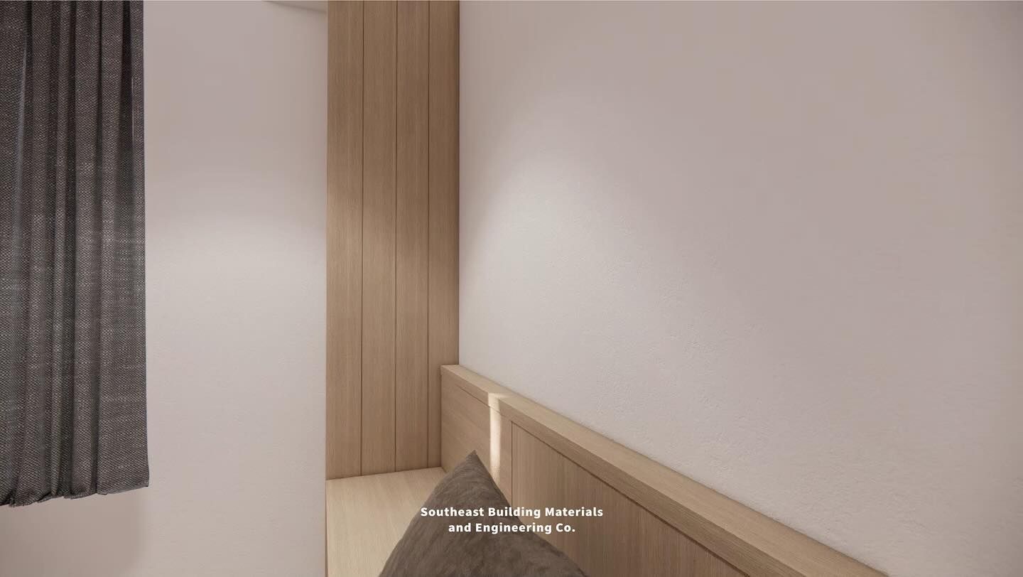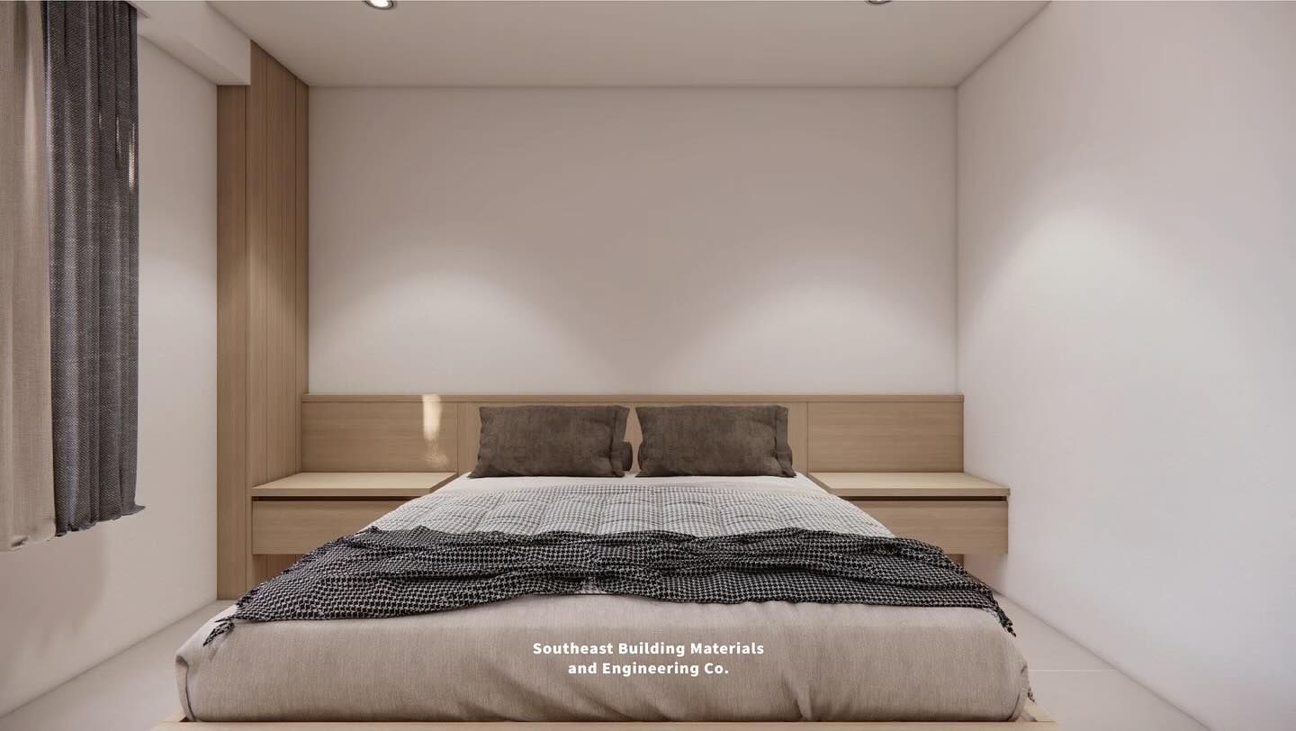居家住宅空間,以簡約的風格,著重於「留白」與「收納」。臥室的裝潢以俐落線條設計,色調以米黃色作為基底,柔化光線,讓整體呈現溫暖而不刺眼的氛圍。